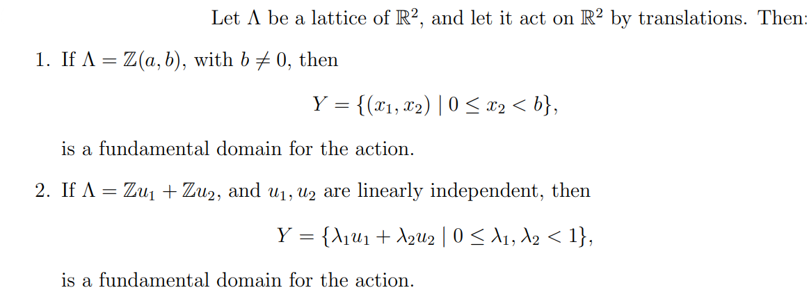 What are fundamental domains for the action of a lattice Λ on R^2 by translations