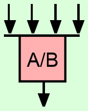 An output will be present when at least “A” number of the total inputs “B” are present. Typically 2/3, 2/4, etc. There may be more than 4 inputs.