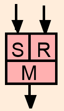 When the “s” input is present, the output will be present and will remain after the “s” input is removed. When the “r” input is present, the output will be removed unless the “s” input is still present.