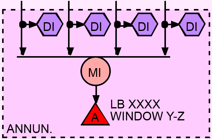 An output will be present when any input is present with reflash capability for subsequent inputs. Each input networked to the ics data highway. Or-logic is computed by ics at annunciator.