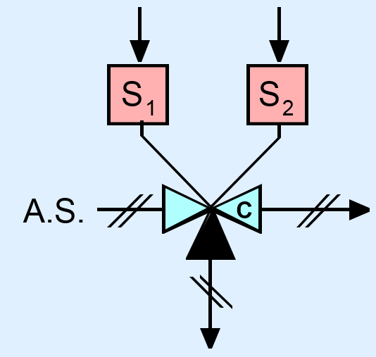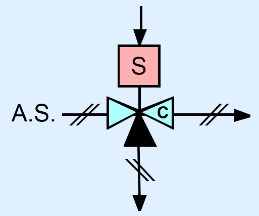 When an input is present to either solenoid, the solenoid will energize. When solenoid “s1” is energized, the shaded port opens to port “c” and the unshaded port closes to port “c”. The valve stays in this condition after “s1” is deenergized and until “s2” is energized.