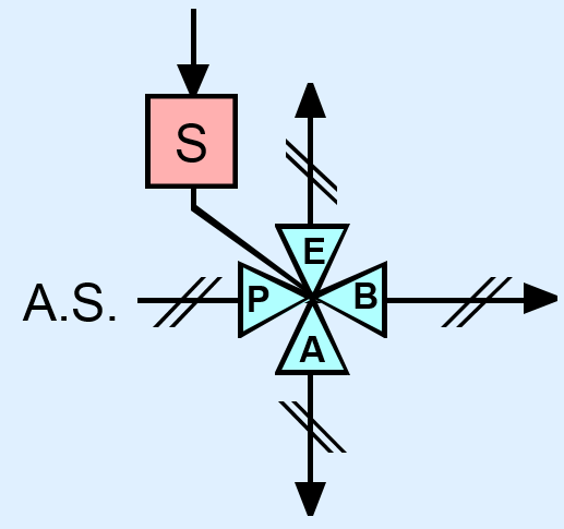 When an input is present, the solenoid will energize. Energized - port “p” is connected to port “a” and port “e” is connected to port “b”. De-energized - port “p” is connected to port “b” and port “e” is connected to port “a”.