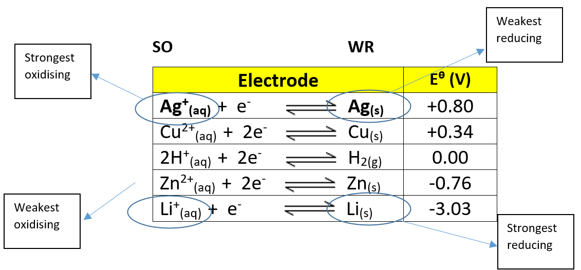 How do you work out the strongest oxidising and reducing agents using SOWR?