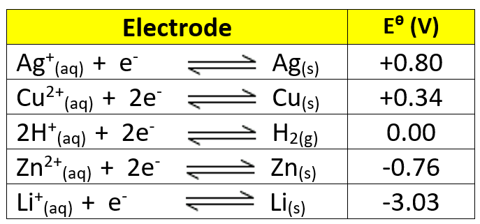 Find the most positive electrode value and write SOWR