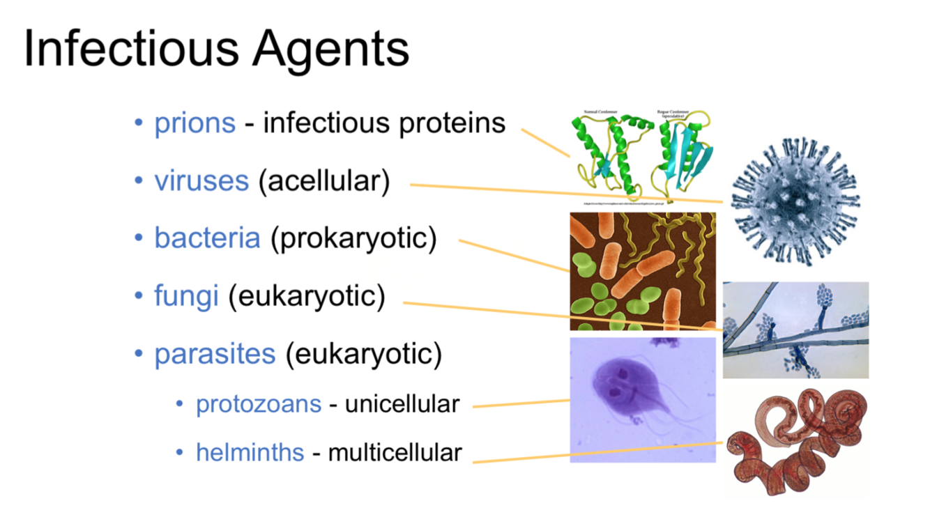 What are the different types of infectious agents?