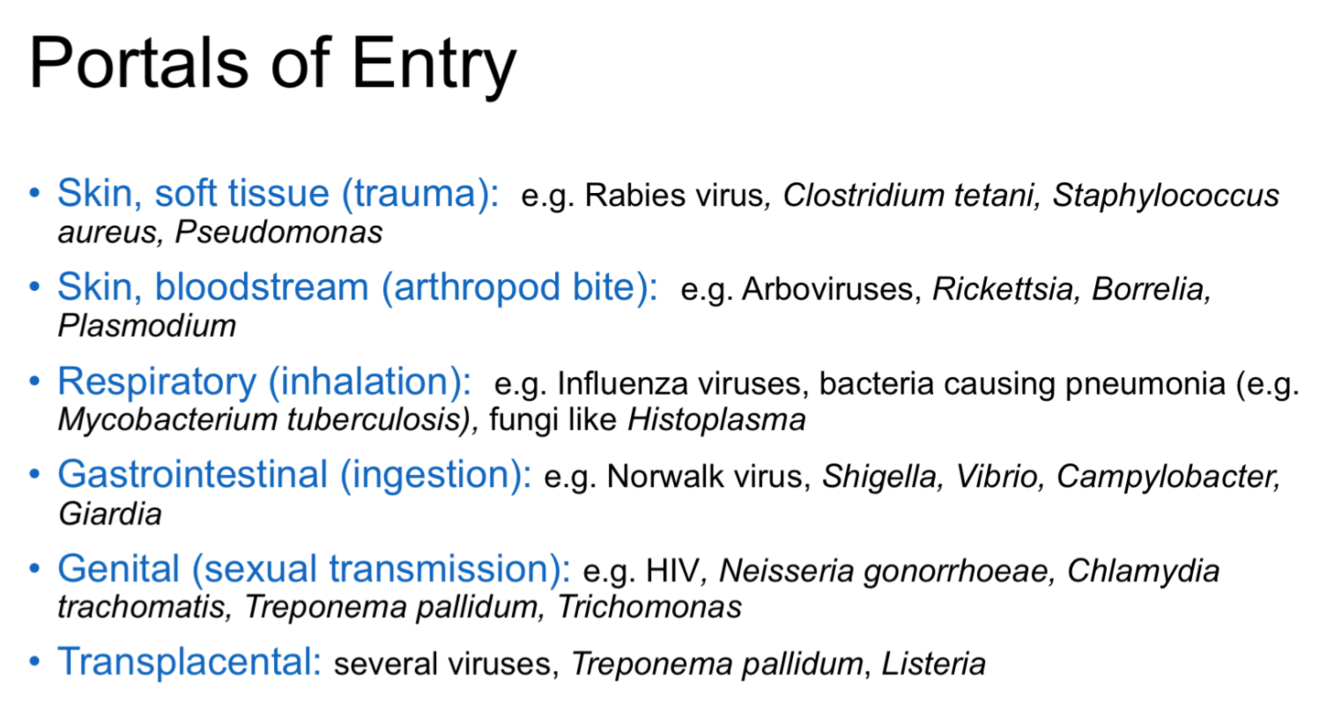 What are the different portals of entry of infectious agents?