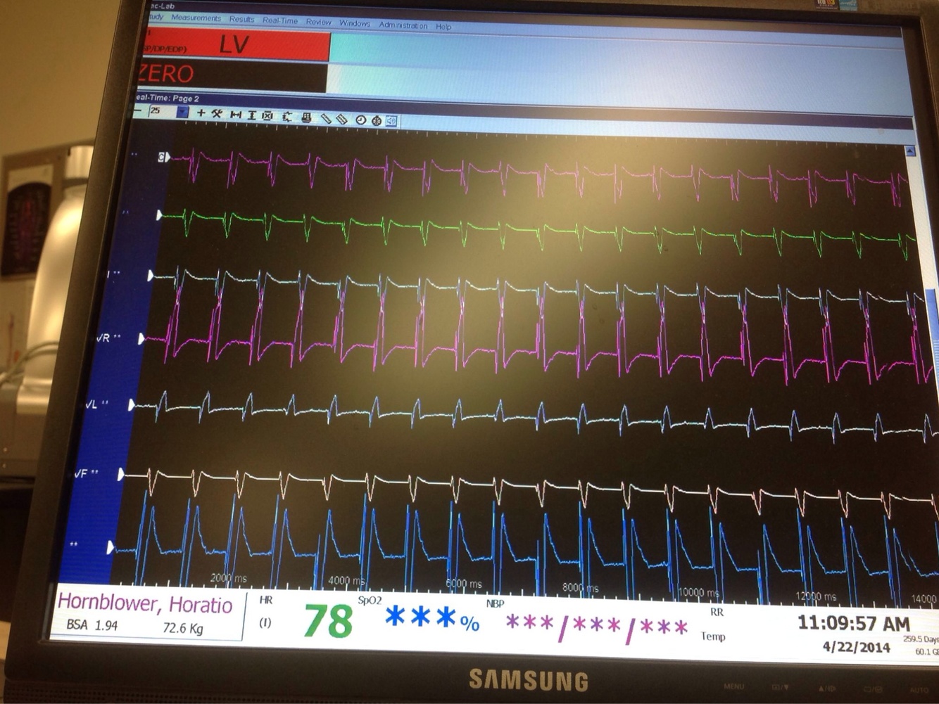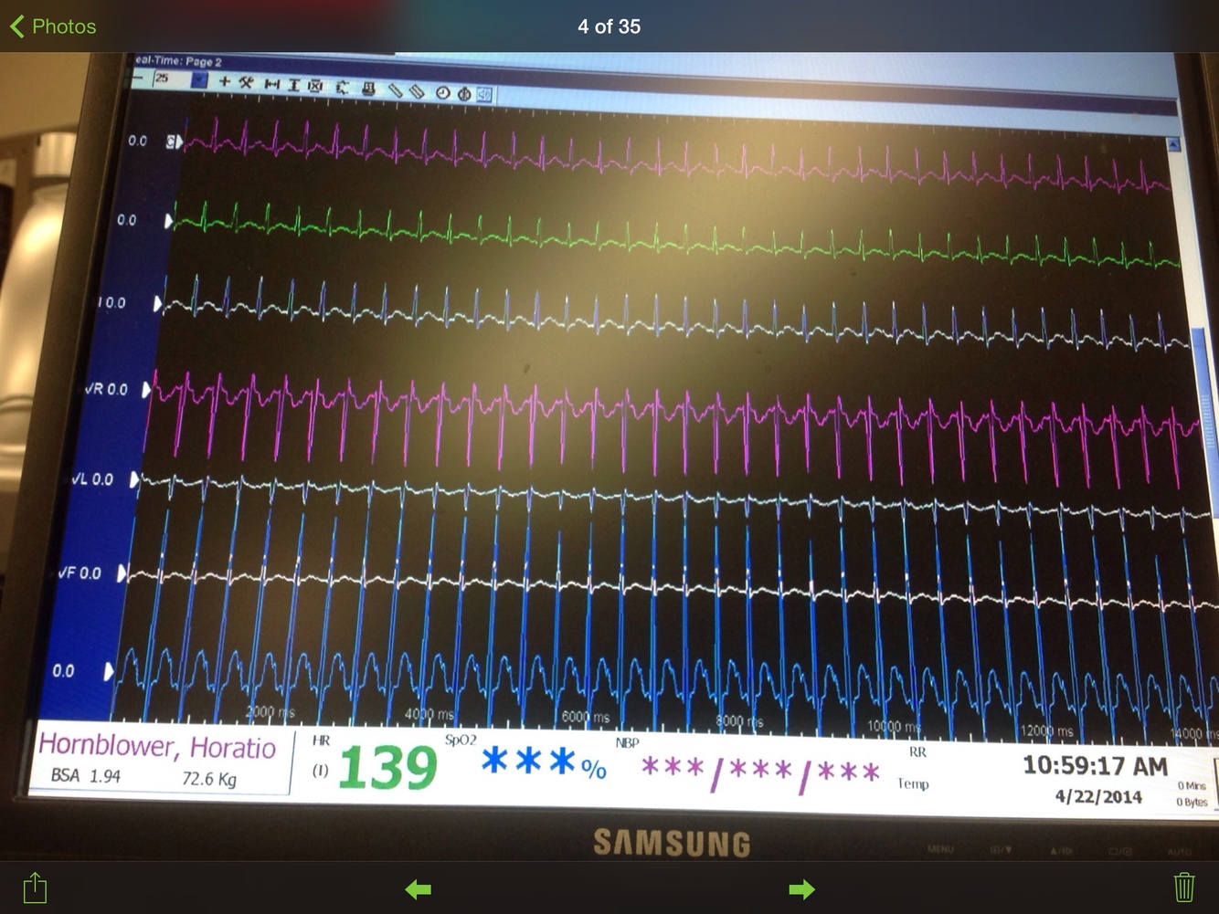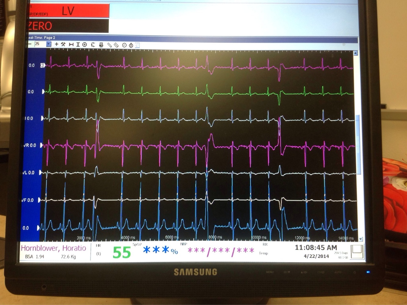 This can occur cannulating a vessel. This is a shockable rhythm.