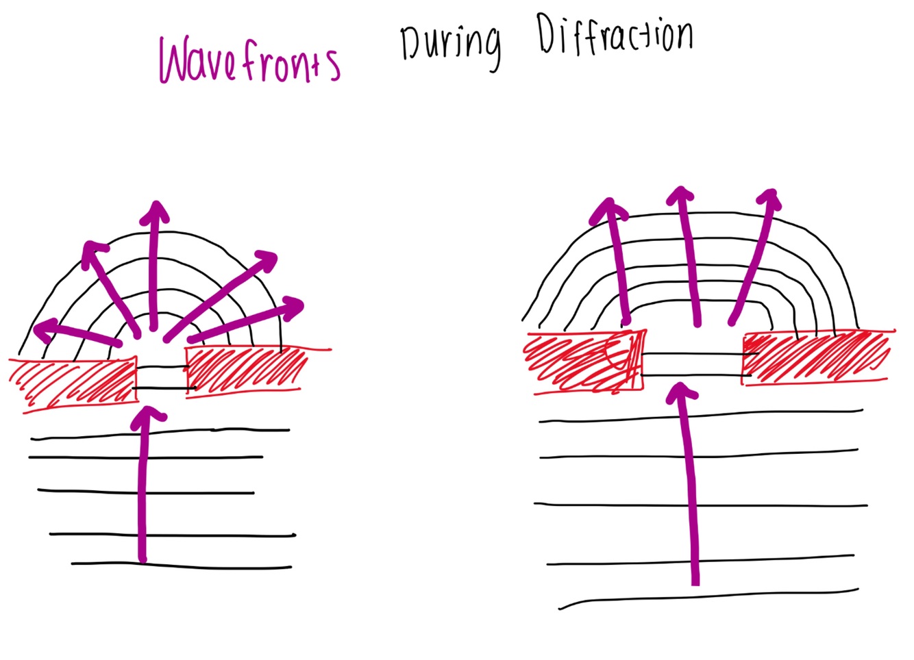 * hyeogens principle: when a wave is disturbed each point where there is a disturbance becomes a source for a spherical wave