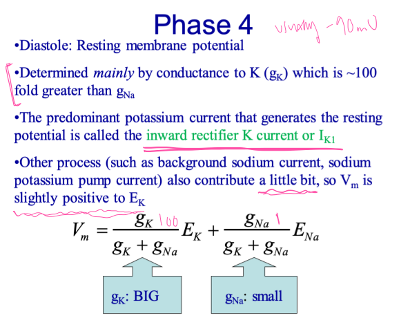 PHASE 4: IK1 (the inward rectifier K current) and a small, background Na current (not shown in the figure)