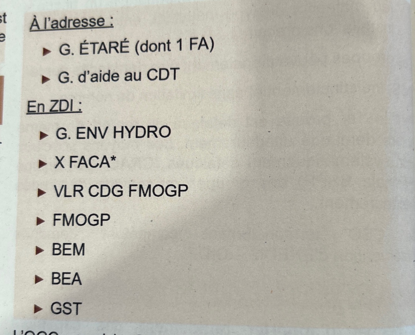 Ce groupe constitue la structure de commandement indispensable à la mise en œuvre du concept tactique d’un feu de type dépôt hydrocarbures et permet d’engager les moyens hydraulique, lourd définis dans le POI qui sont obligatoirement associés