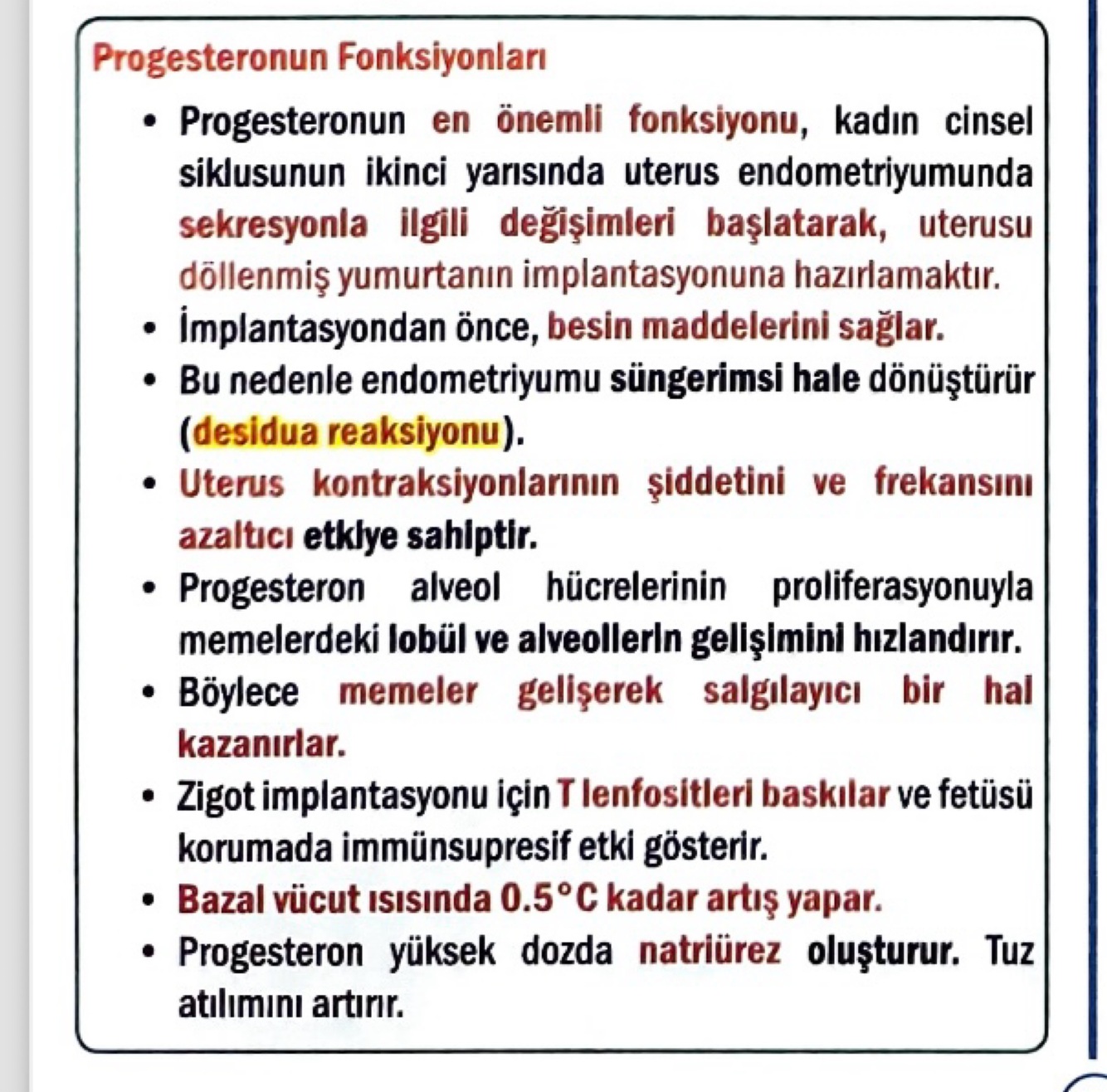 Progesteronun fonksiyonları