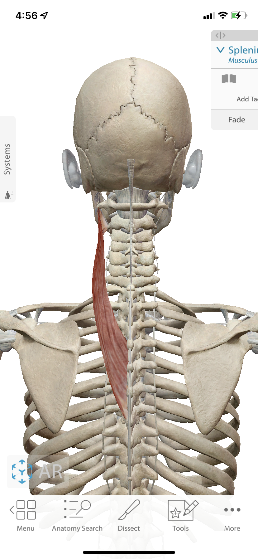 Origin: tips of transverse processes up upper 6/7 thoracis and C7 and from articular process of the 3 cervical above this