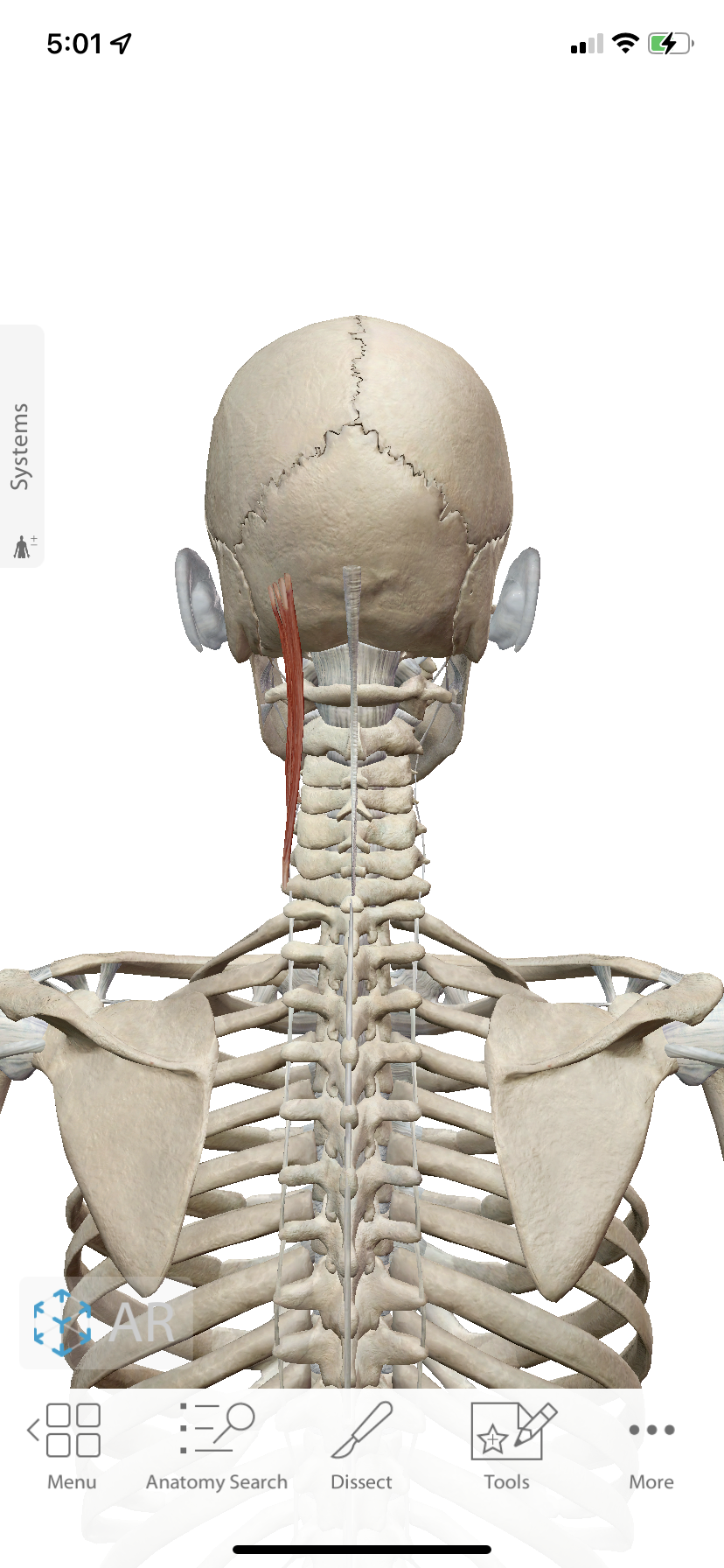Insertion: between superior and inferior nuchal lines of occipital bone