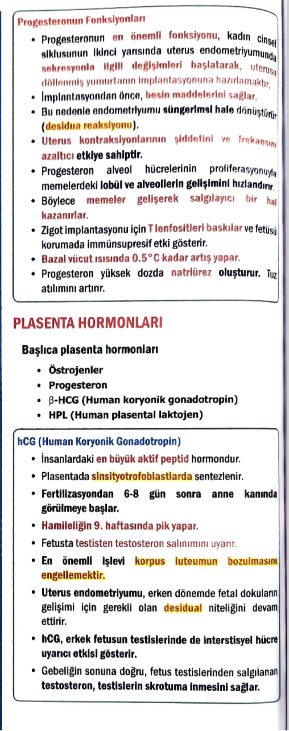 Plasentada bulunan başlıca hormonlar nelerdir?
