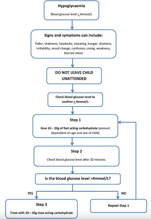 Hypoglycaemia is a short term complication of T1DM. How can we teach parents to recognise this and how can they manage it if it is mild?