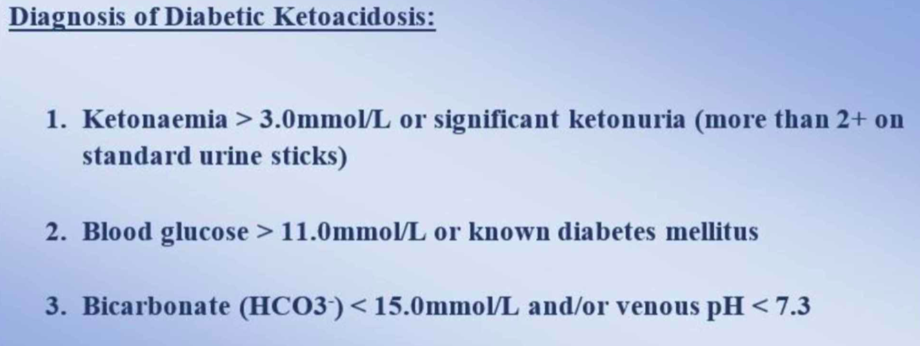 Ketogenesis initiated when no insulin for fuel. Initially kidneys produce bicarbonate to buffer ketone acids in the blood but over time the ketone acids use up the bicarbonate and the blood starts to become acidic. This is called ketoacidosis