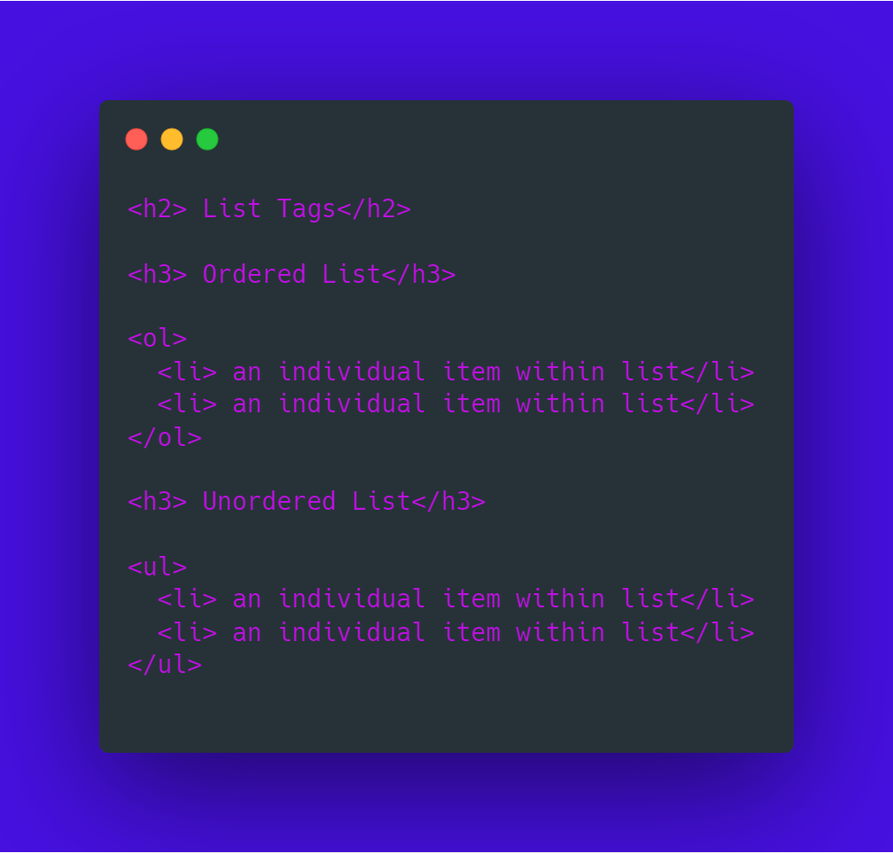 What HTML syntax is used to create ordered lists?