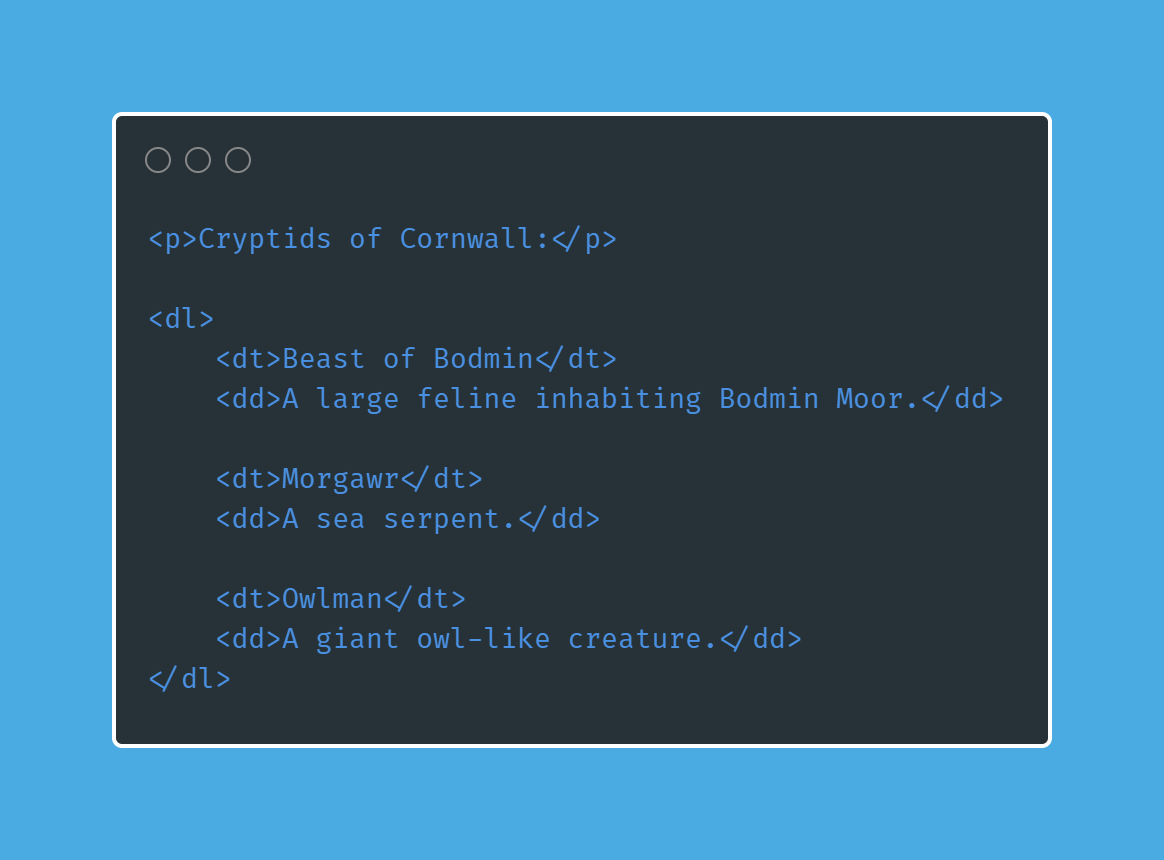 How do you define a term with a definition list with an HTML tag?