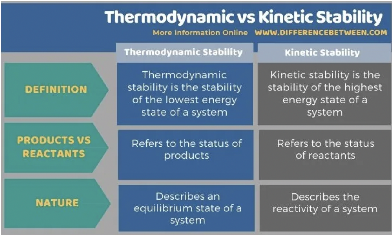 Kinetic stability vs thermodynamic stability