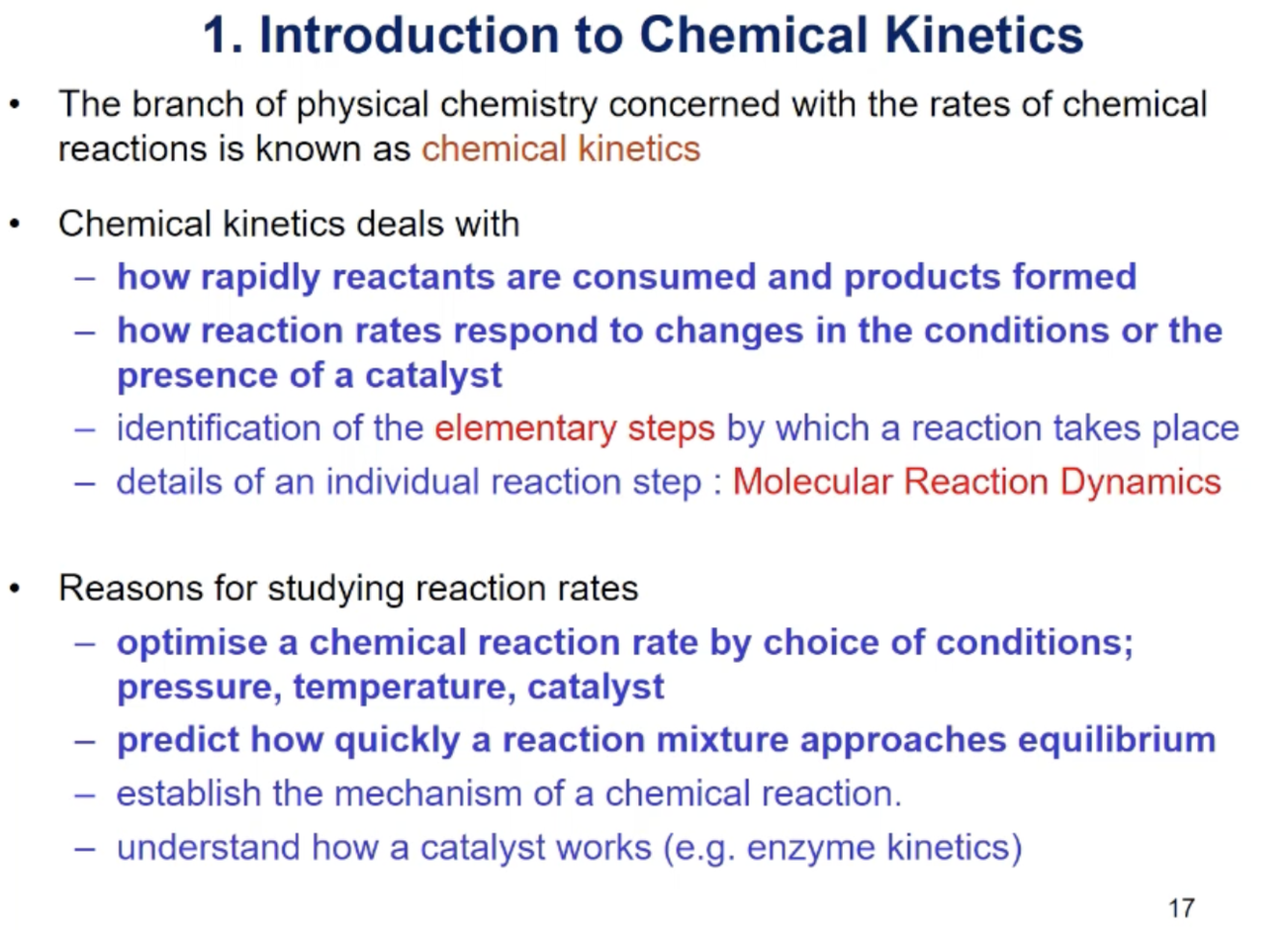 Explain what is kinetics and what it deals with