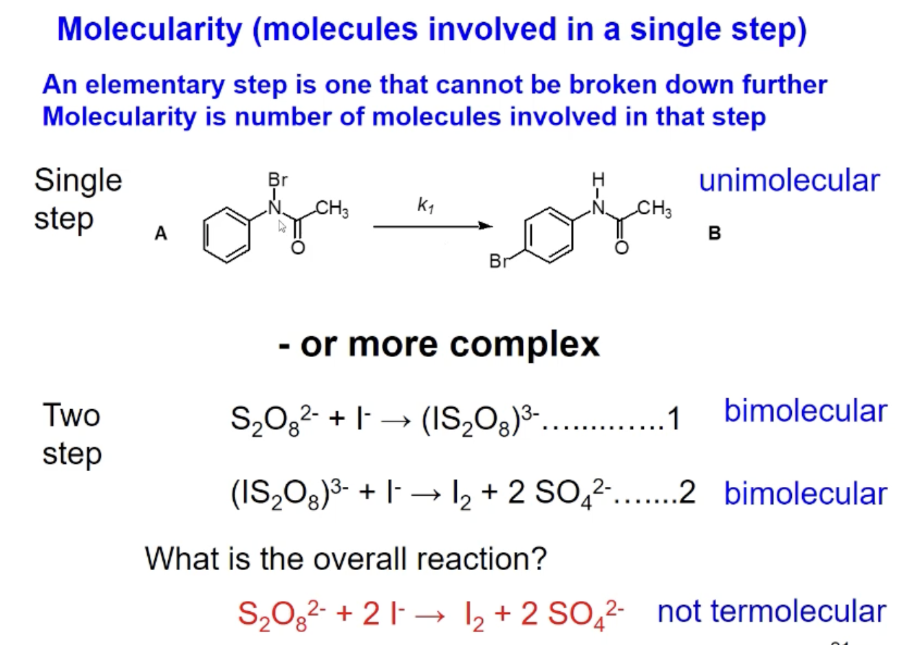 In the overall reaction 3 molecules involved ut needs to be split up into steps to determine molecularity
