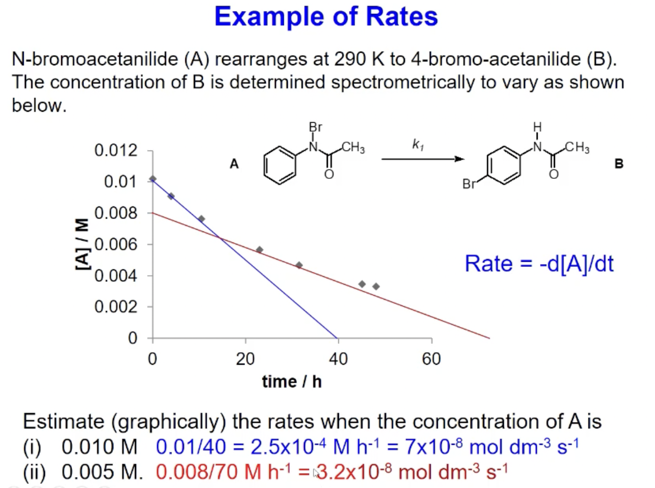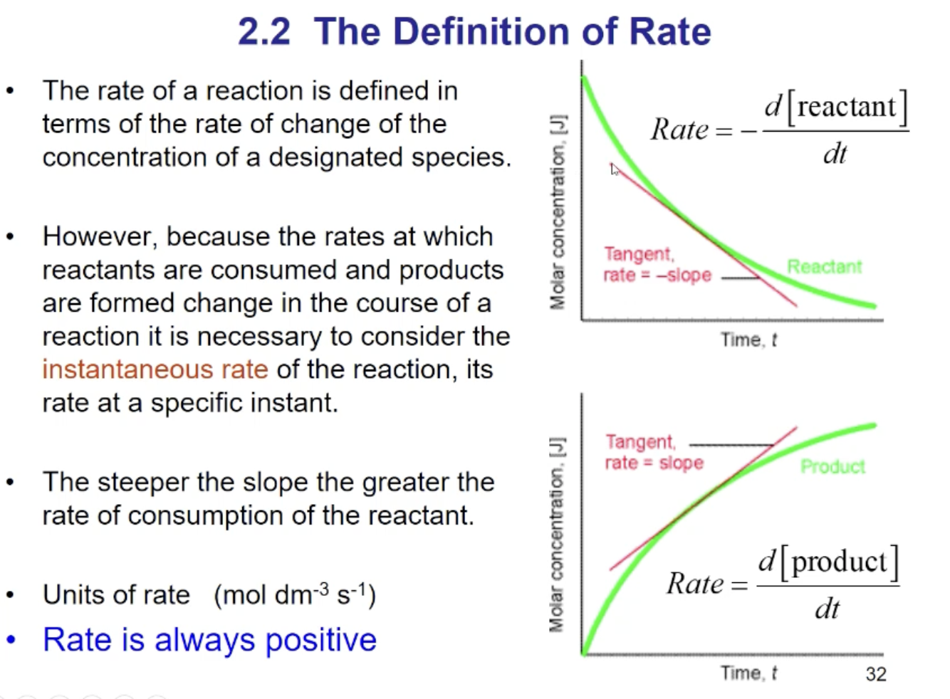 Rate - the slope at a particular time / concentration