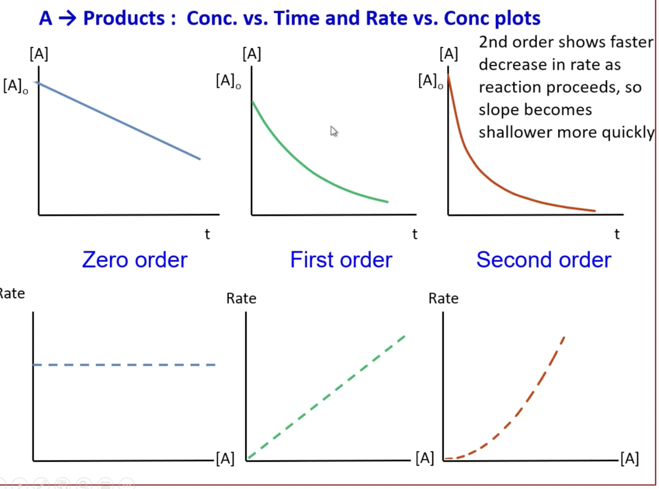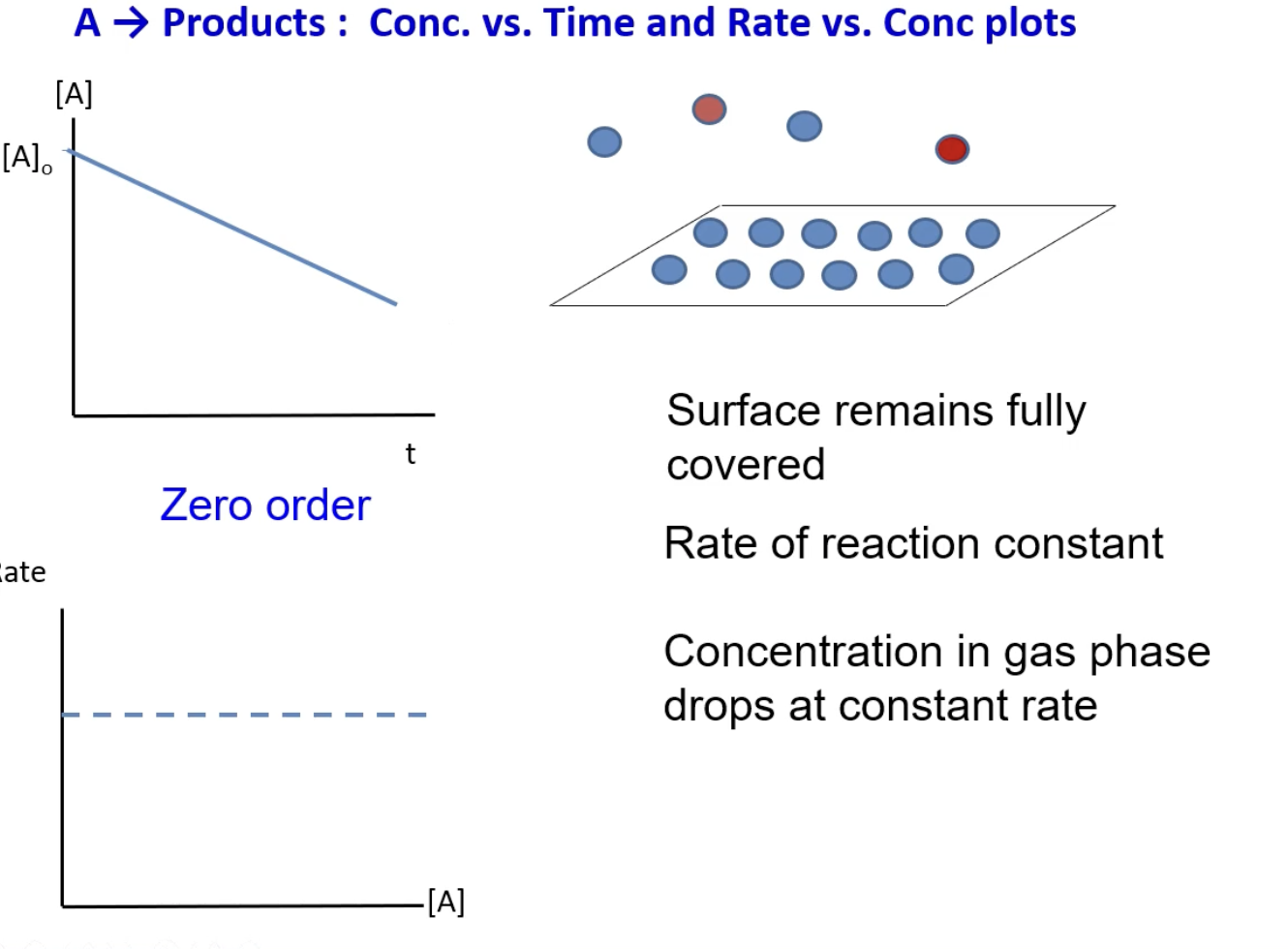 What is the zeroth order plots for conc vs time and rate vs conc