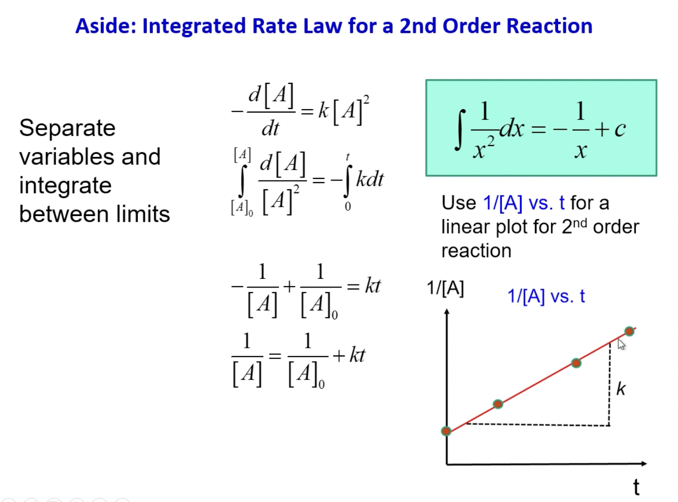 What is the integarted rate law for second order reaction?