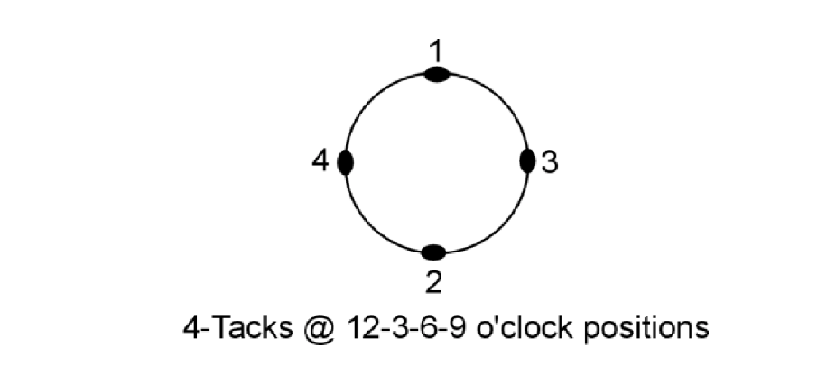 Draw a sketch of a 6” pipe indicating the location of 4 tacks.