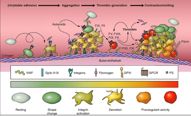 Stages of platelet actiation and thrombus formation