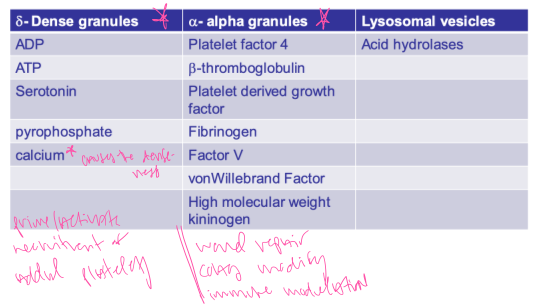 Roles of platelet granules