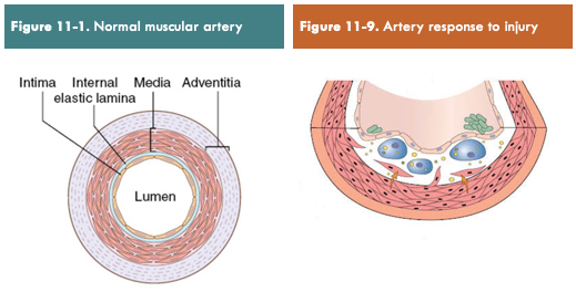 Arterial wall: normal muscular, vs response to injury
