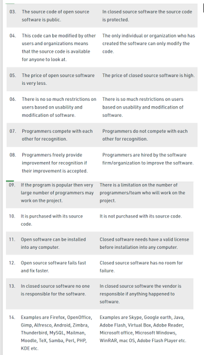 Is a software for which the source code is freely available to download. The code can be inspected and modified to suit the specific requirements of the user. As the source code is open, users can contribute to fixing errors and vulnerabilities in the code, and can sometimes provide assistance with the product to other users. Also, any number of people could potentially contribute to the software development, and development is often a group effort. Usually free, but not all free software is open source (closed source software can also be free).