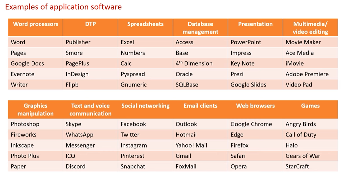 Examples: desktop publishing, word processing, spreadsheets, web browsers.