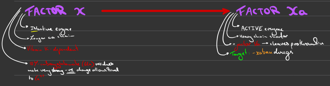 What does Factor X become in blood coagulation & explain substrate & product?