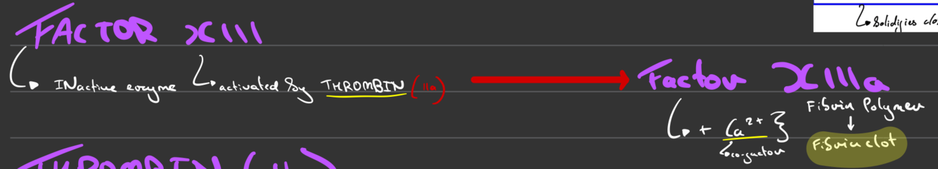 What does factor XIII become in blood coagulation (& explain substrate & product)?
