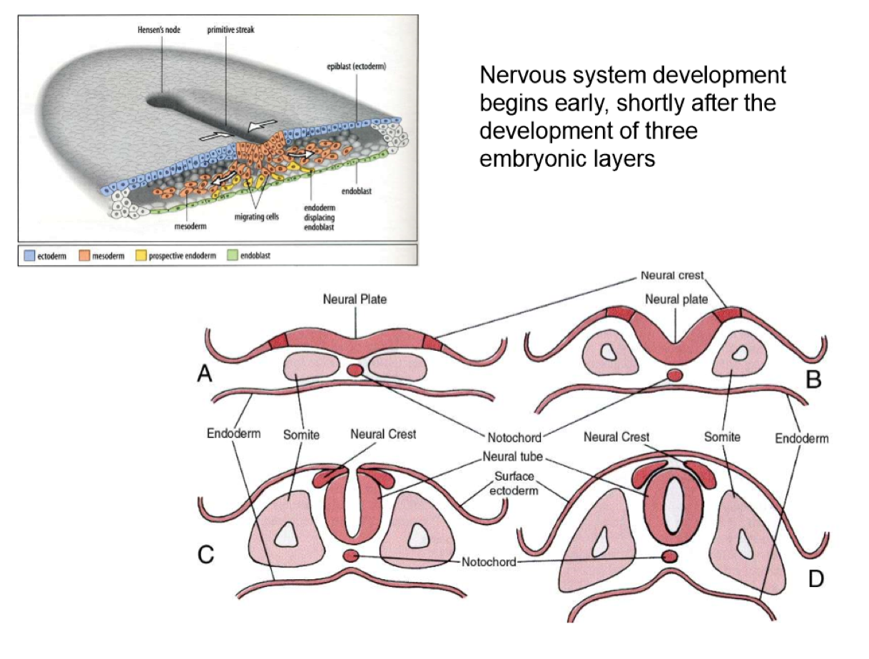 The neural plate changes and neural folds develop at the lateral margins. The neural folds begin moving toward each other, forming the neural groove on the dorsal surface of the embryo. Eventually the neural plate cells pinch off to form the neural tube