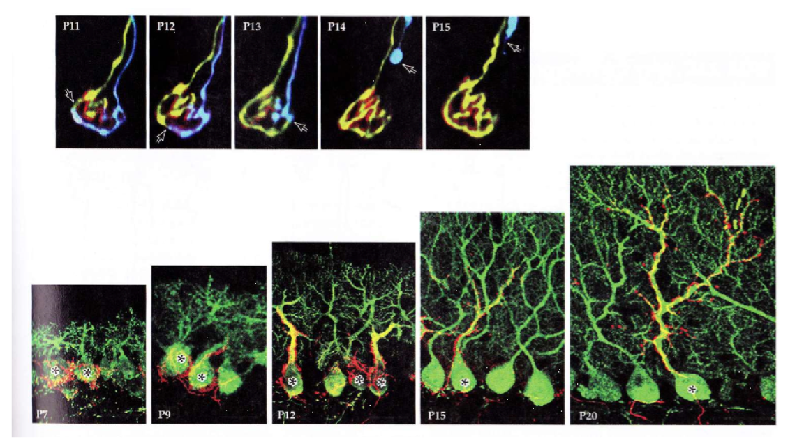Once a neuron is “born” in the ventricular zone, it often must migrate over some distance to reach its final destination in the developing brain. Neurons use chemical cues, contact with other neurons or glial cells, and other physical aspects of potential pathways to guide their migration. The formation of correct connections between groups of neurons also requires precision; not only must the correct groups of neurons connect, but synapses must often be made only on specific cell types within a target zone or on specific regions of the recipient neuron (e.g. dendrites vs. neuronal soma). In some instances, neurons make connections early in development, when targets are in close proximity, and “reel out” processes as growth of surrounding structures pushes them apart. In other instances, neurons use chemical or physical cues to grow to a target and synapse on the correct postsynaptic partner. Pathways in which a known pattern of topographic connections are normally made, such as the projection of retinal ganglion cells onto central visual targets, are often chosen as model systems to study the factors involved in synapse formation. For example, electrical activity in afferent fibers has been shown to be important in making correct connections, especially in sensory systems. Although most connections within the CNS are made during development, modification of connections, or synaptic plasticity, can occur following damage to a particular projection or in the course of “learning”.