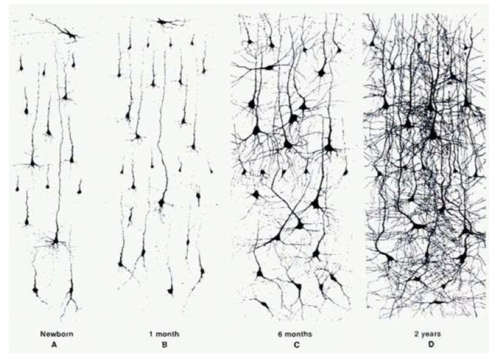 Neuronal migration, trophic factors, synapse elimination (plasticity), maturation of neuronal connections