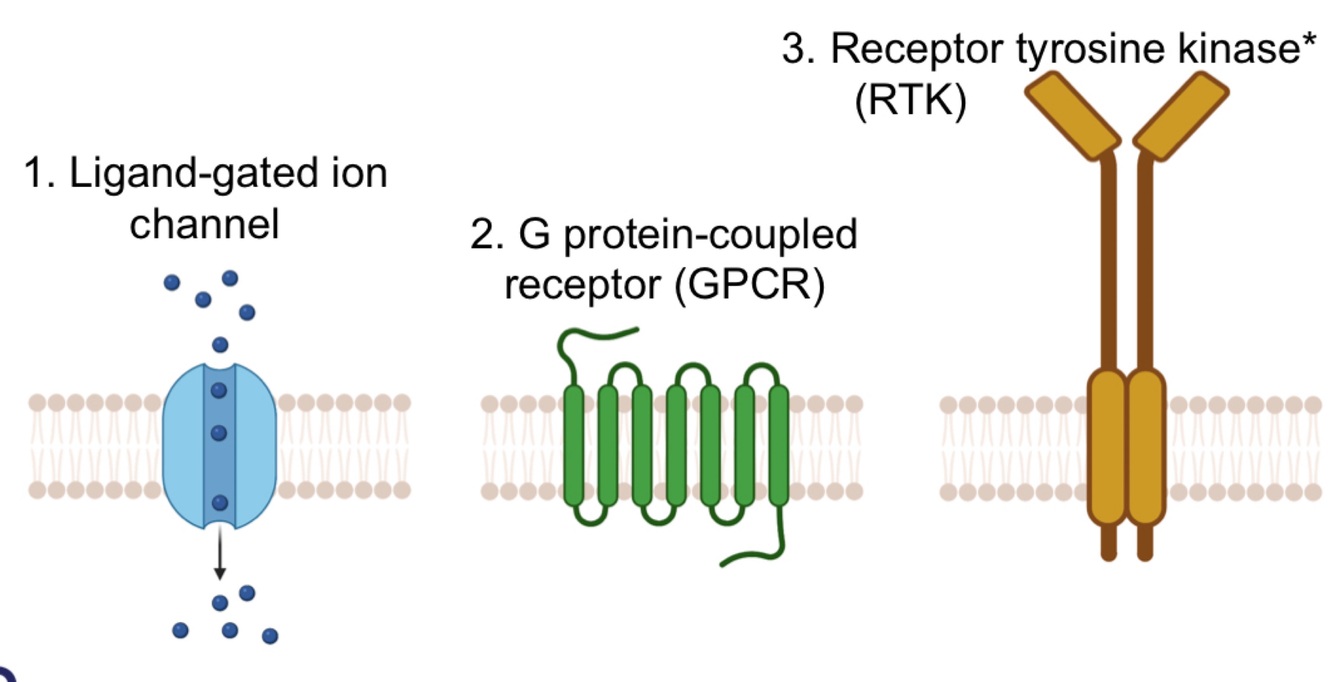 Three main classes of receptor