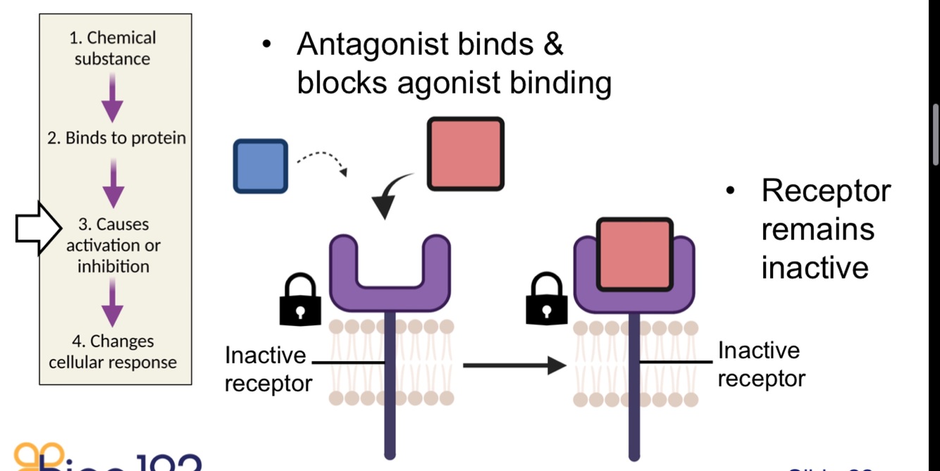 - stops agonist from bindinding - inhibiting cellular response