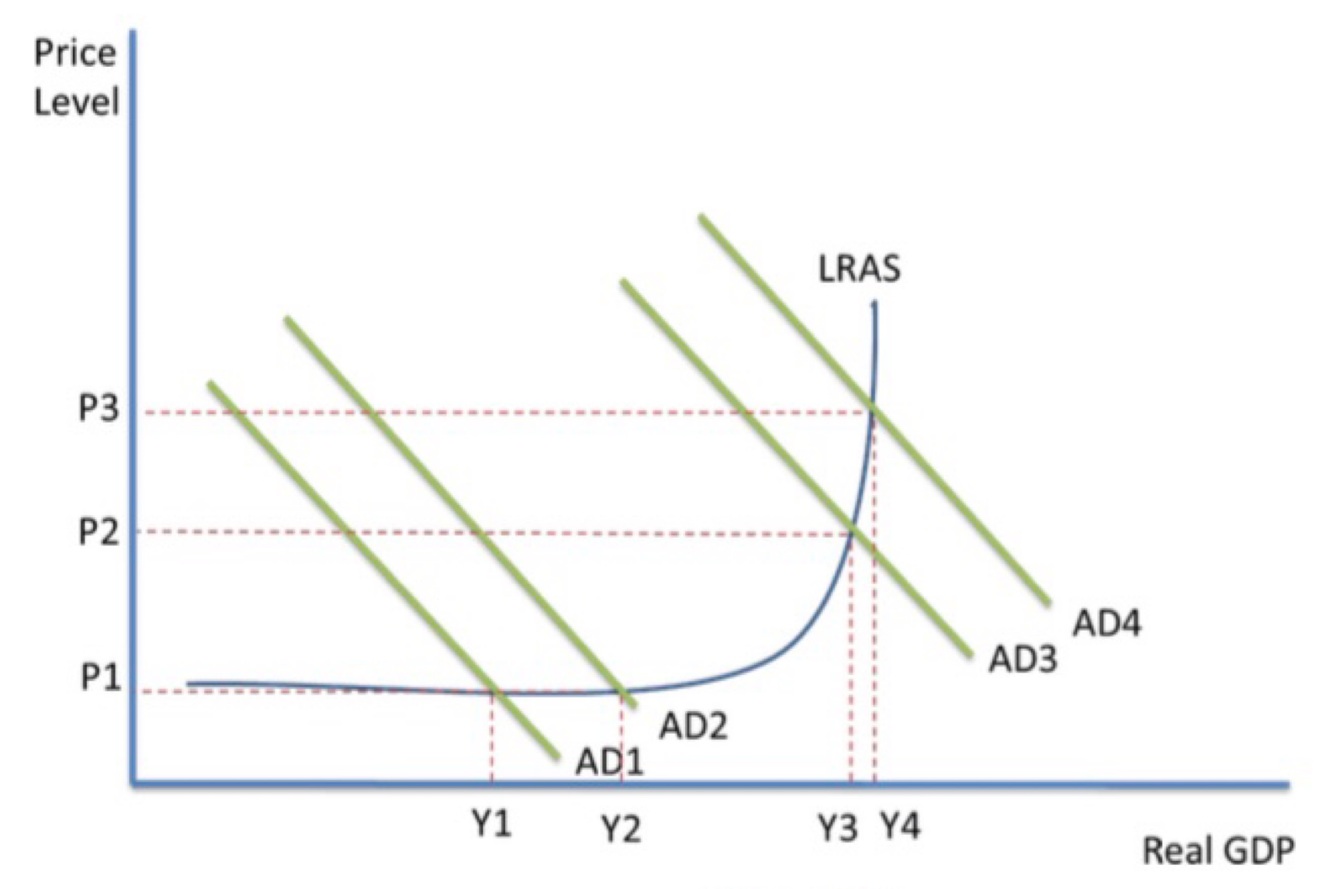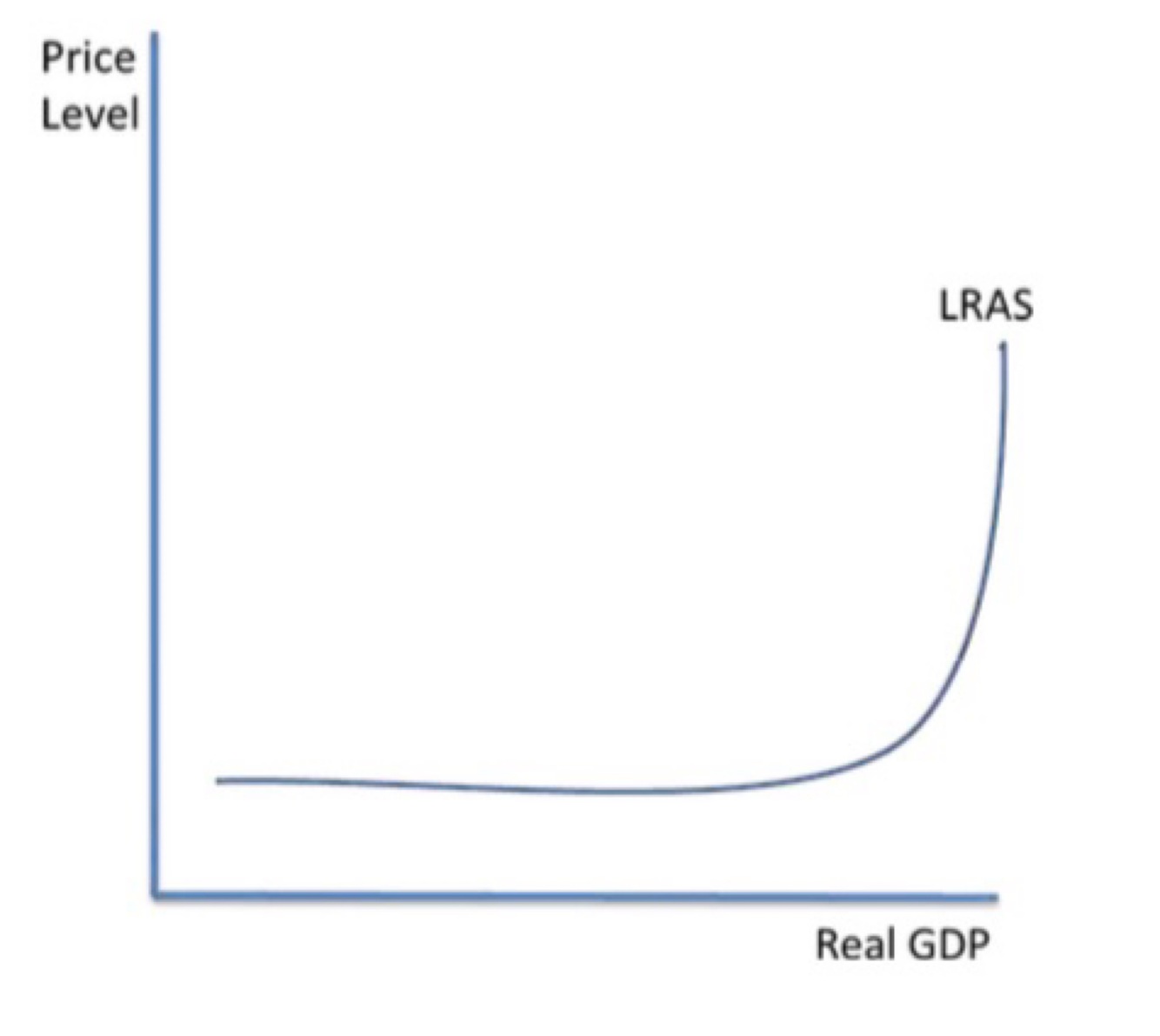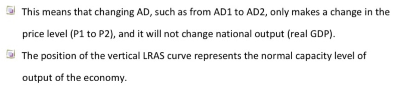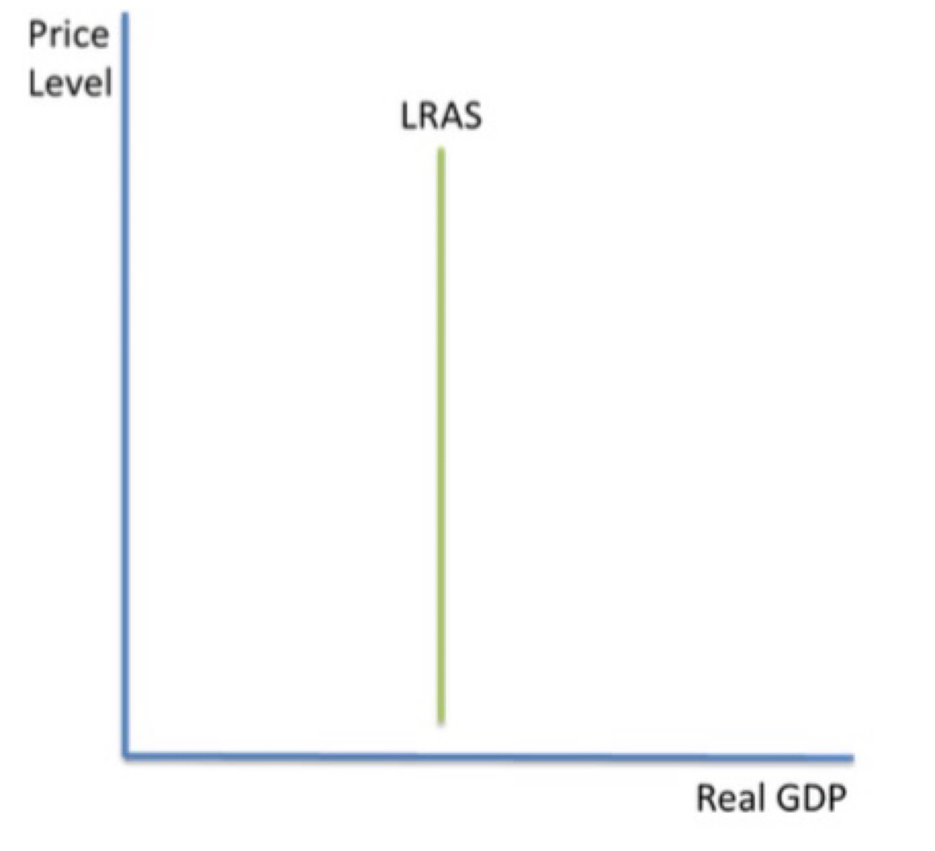 In the long run, output is fixed at each level and all factors of production in the economy are fully employed