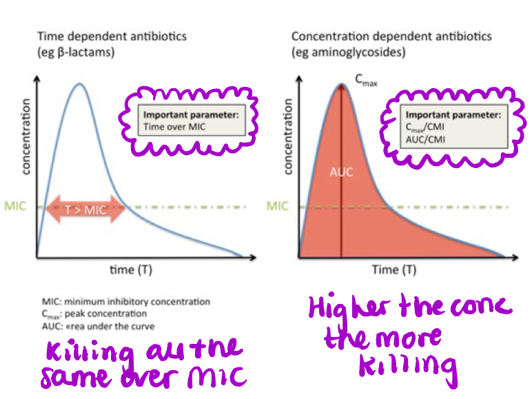 Concentration Dependent: need a certain concentration at binding sites e.g aminoglycosides