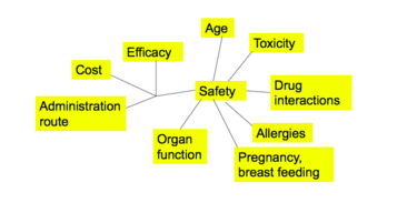 Which factors helps one determine which antibiotic is the best choice?
