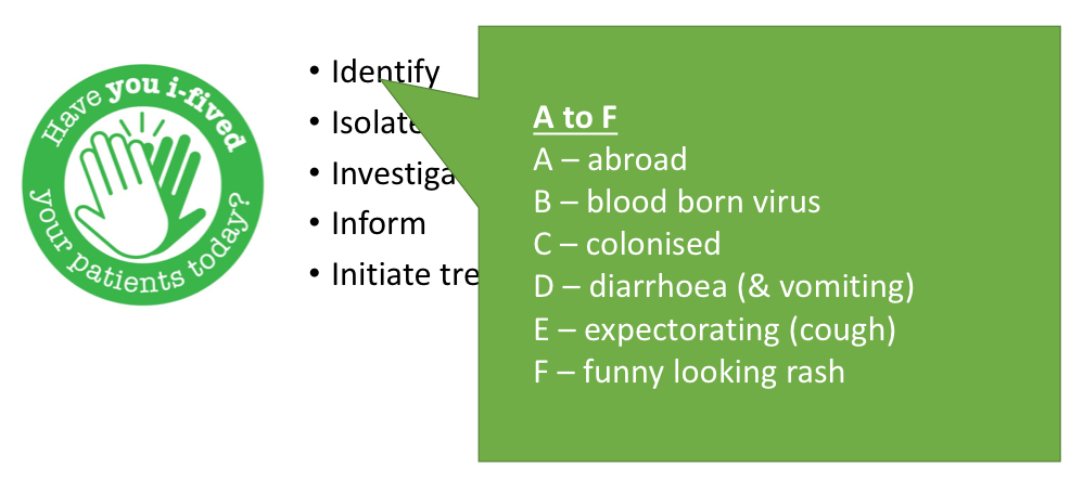 What is the A to F approach of identifying infection in the I5 model?