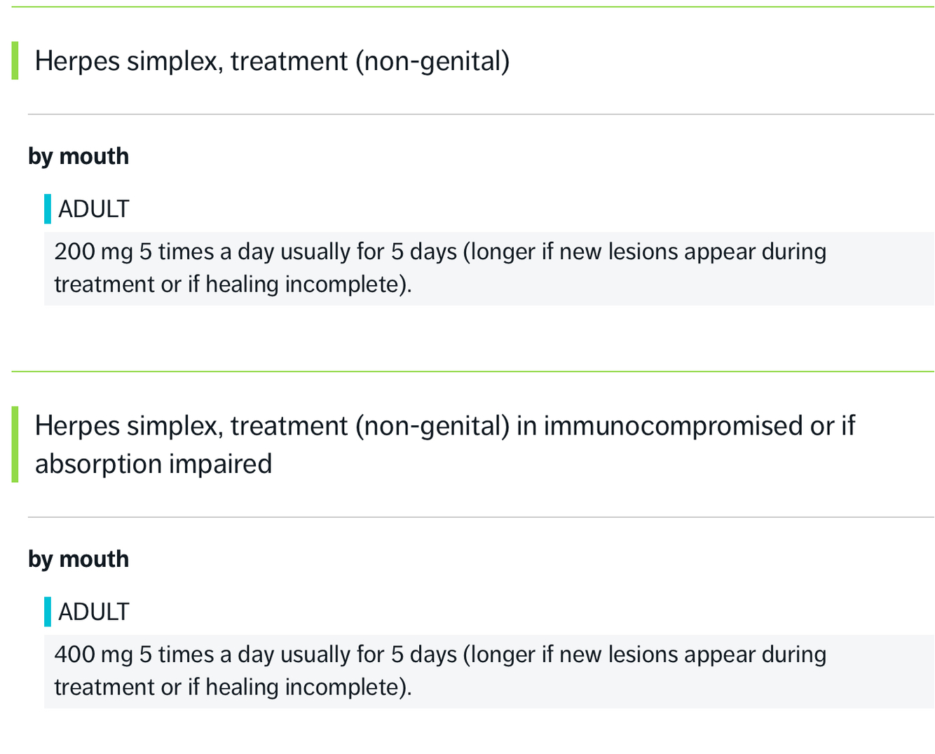 Same for genital, dose depends if immunocompromised or relapsing