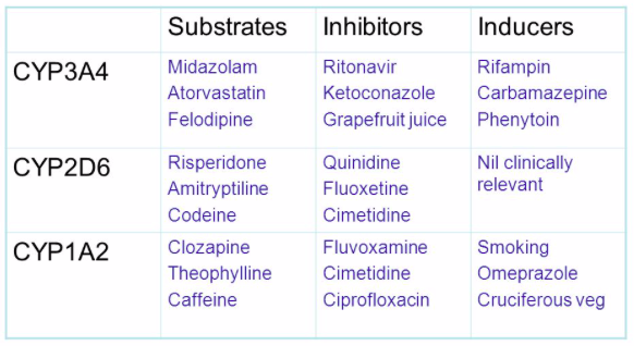 DDIs: Inhibits CYP1A2 and 3A4 so can interact with warfarin, theophylline and phenytoin and etc
