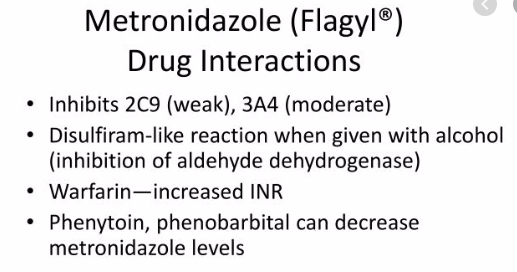 - Allergies and reactions e.g metronidazole and drinking