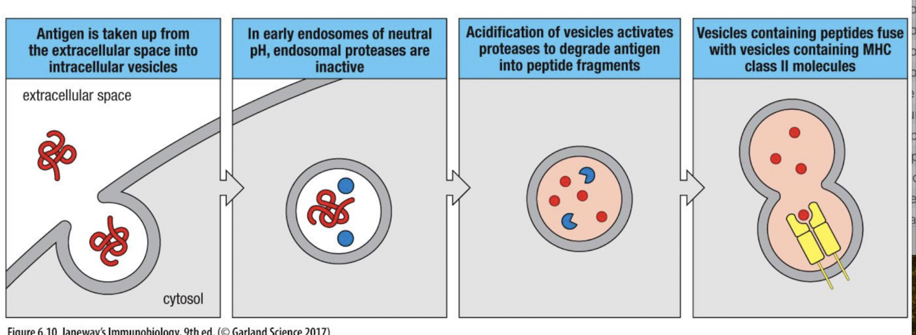 diagram of how peptides are generated in the exogenous pathway (MHC II)