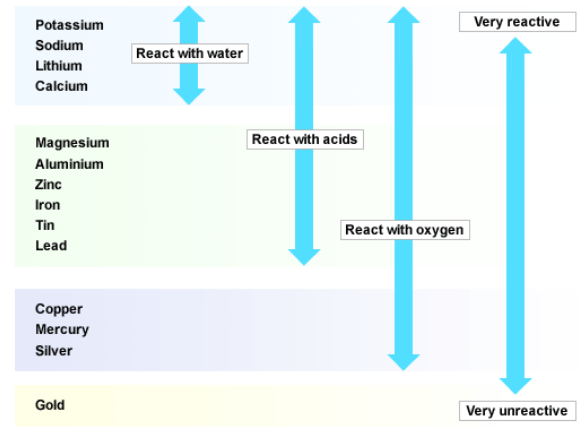 How does the reactivity of metals affect their reactions with water, acids, and oxygen?